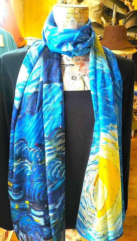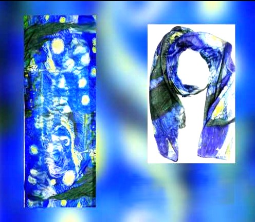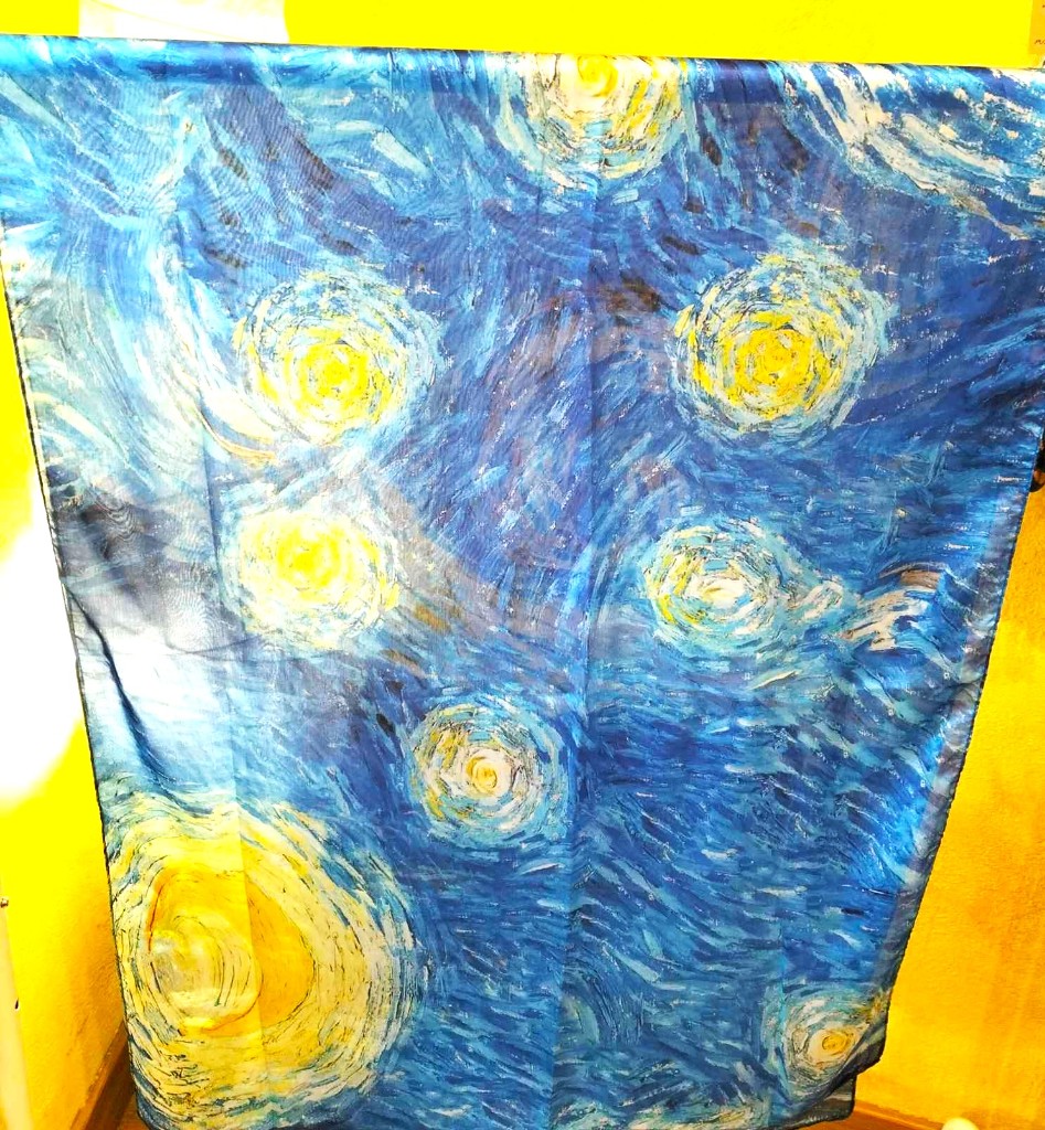 Fular de seda 70x180 con el motivo "Noche estrellada" de Vincent Van Gogh.