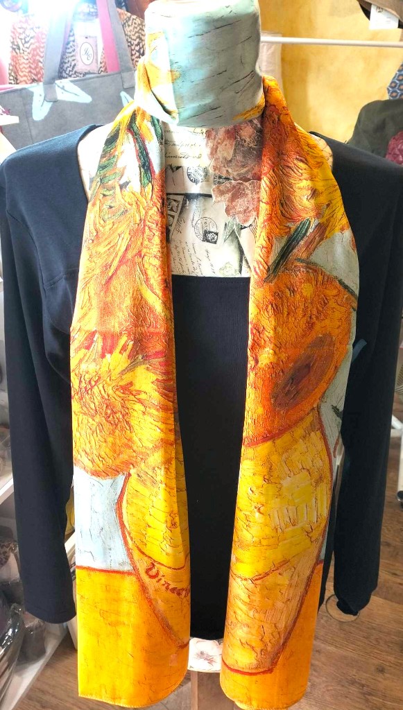 Fular de seda 70x180 con el motivo "Los girasoles" de Vincent Van Gogh.