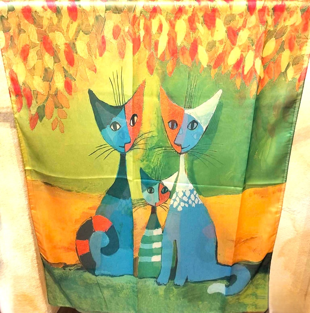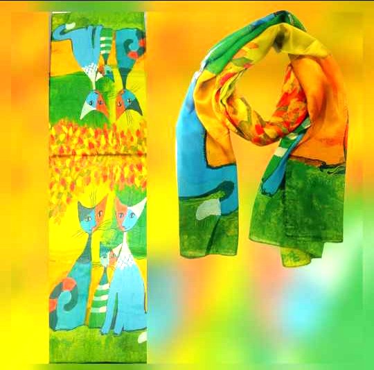 Fular de seda 70x180 con el motivo "Tarde en el parque" de Rosina Wachtmeister.