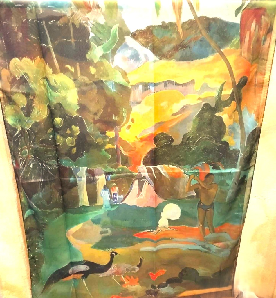 Fular de seda 70X180 con el motivo "Matamoe" de Paul Gauguin.