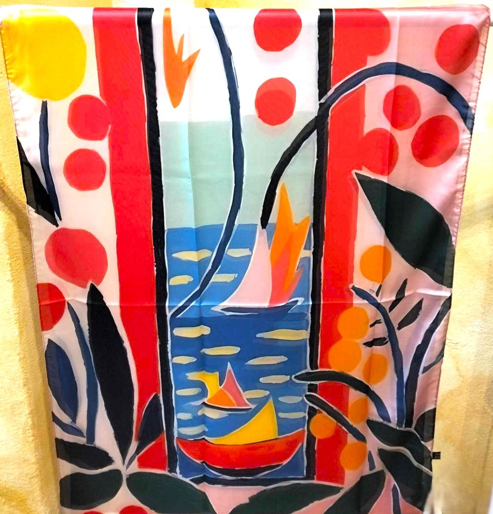 Fular de seda 70x180 con el motivo "Ventana abierta en Colier" de Henri Matisse.