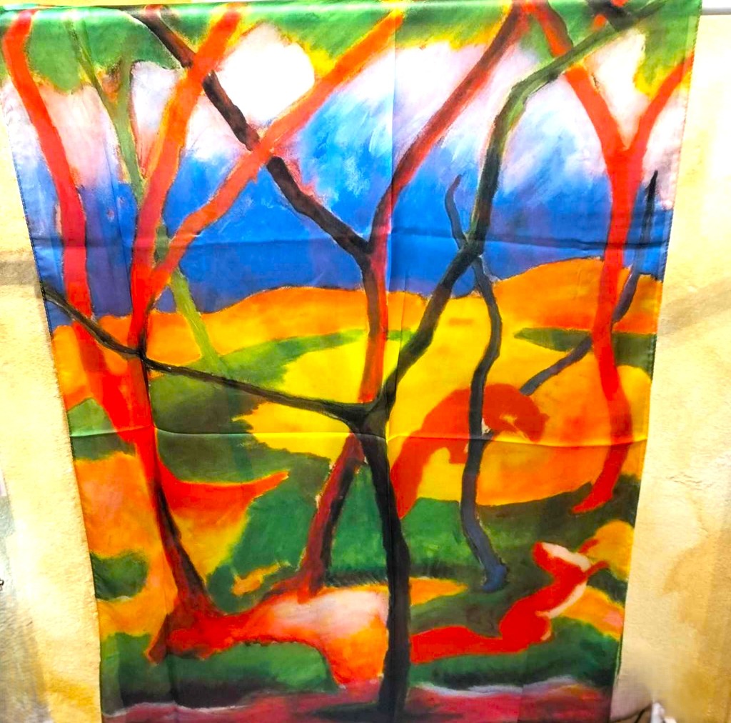Fular de seda 70x180 con el motivo "Comadrejas jugando" de Franz Mark.