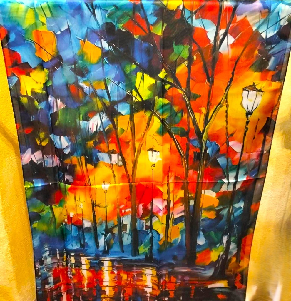 Fular de seda 70x180 con el motivo "Noche en el parque" de Leonid Afremov.