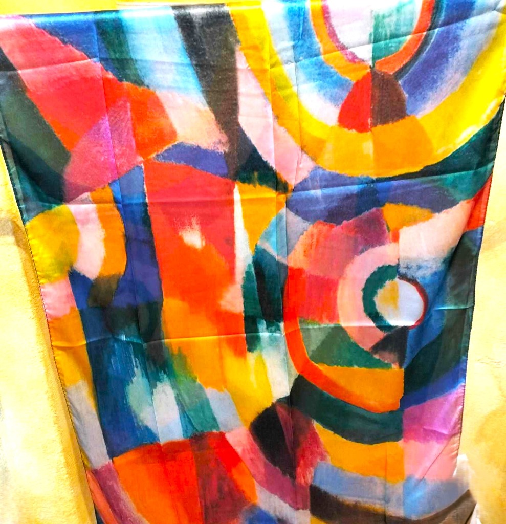 Fular de seda 70x180 con el motivo "Prismas eléctricos" de Robert Delaunay.