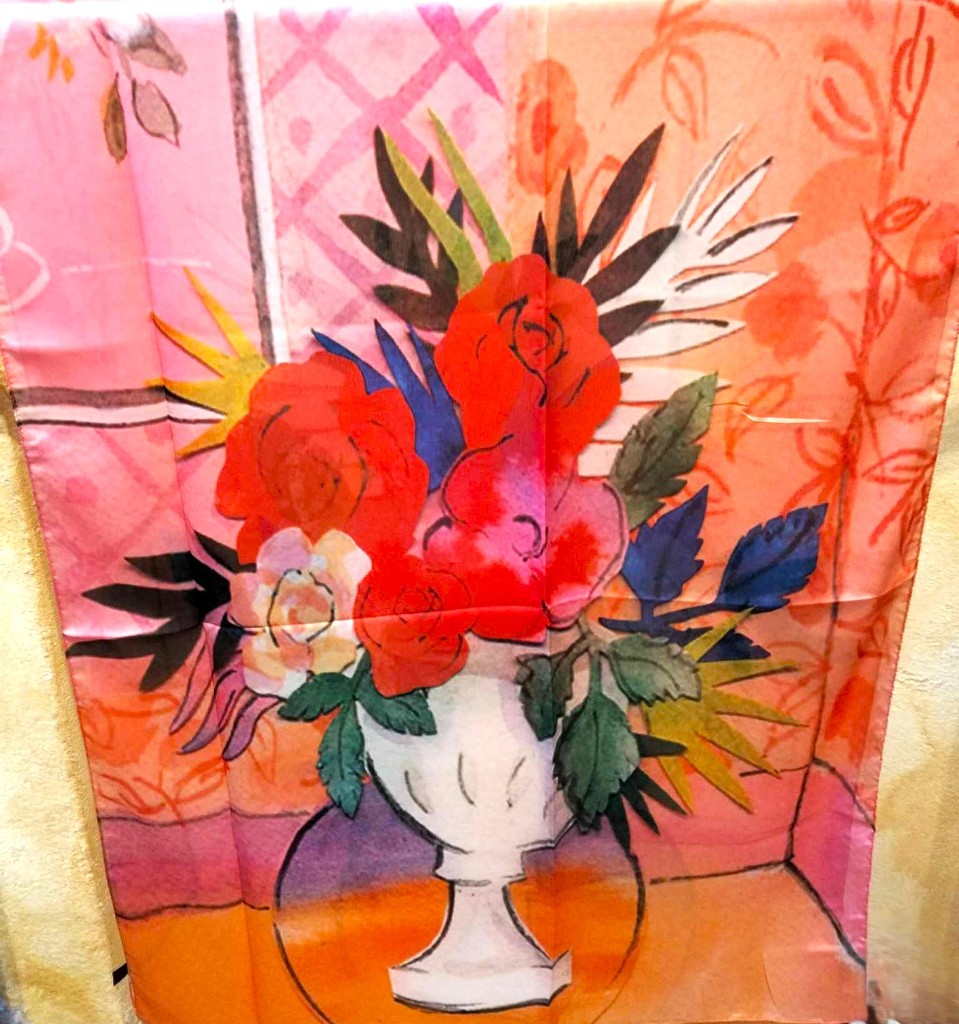 Fular de seda 70x180 con el motivo "La vie en rose" de Raoul Dufy.
